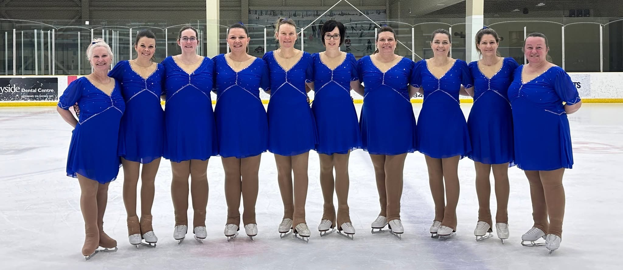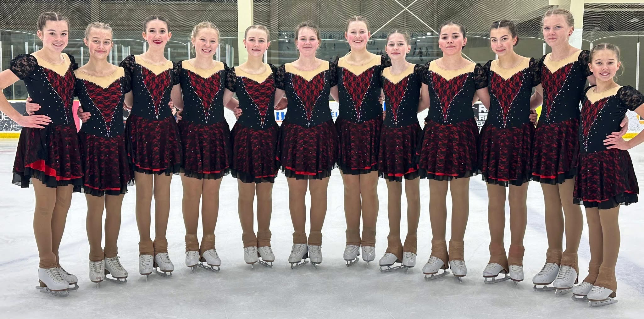 Synchronized skating is a specialized discipline of figure skating. With 8-16 skaters on each team performing choreographed routines to music as one unit. Synchronized skating focuses on the accuracy of formations by combining the artistry of figure skating with the execution of circles, blocks, lines, wheels, intersections, creative and no hold elements in unison to music while demonstrating quality edges, power and flow.